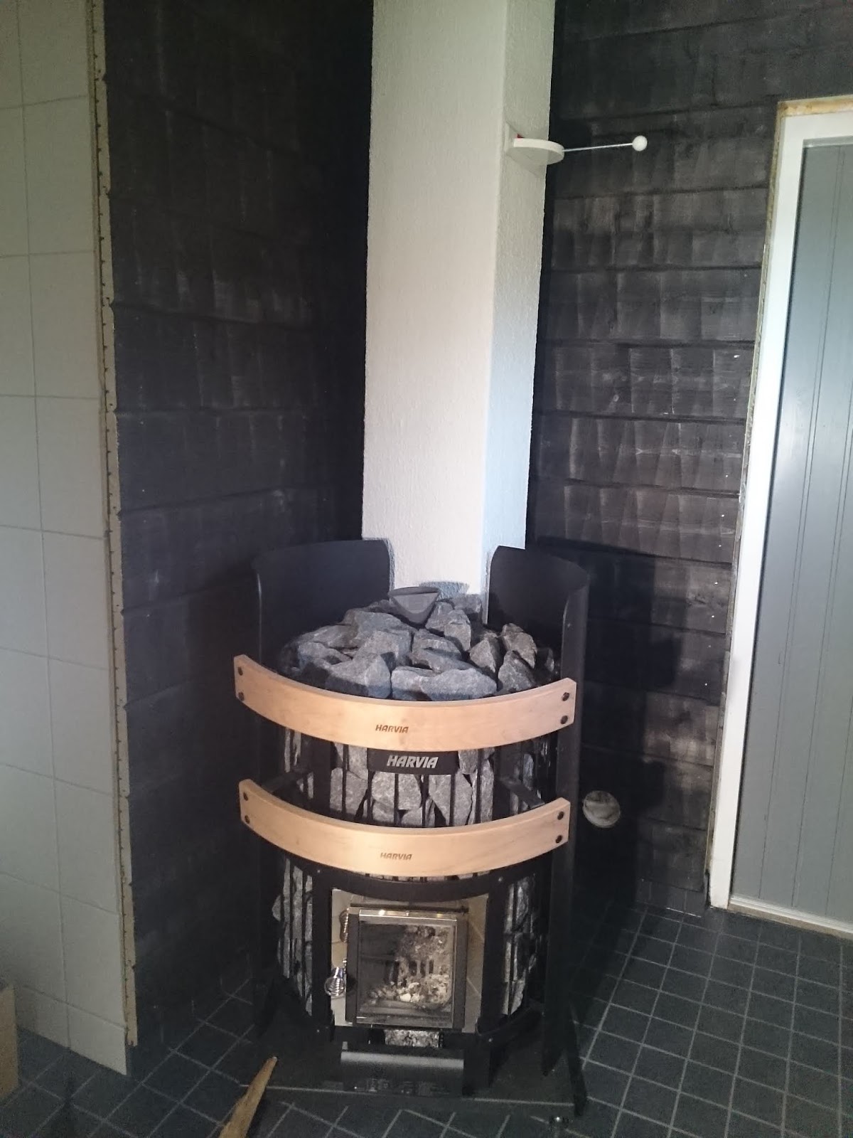 PoistaHienon näköstä saunaa näkyvissä. Nykyset kiukaatkin on niin upeita ja erikoisia. Sisustuselementtejä jo sinällään.